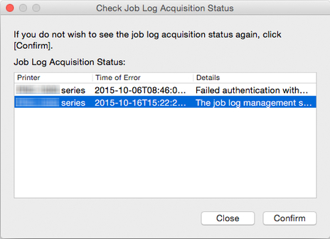 Viene visualizzato un elenco di errori che si sono verificati durante l'acquisizione dei rapporti dei lavori.