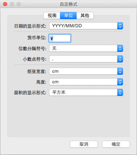 在自定格式对话框中的单位选项卡上设置Accounting Manager中显示的单位。