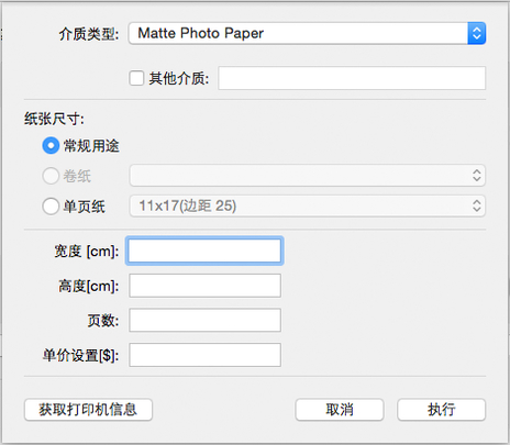 要为介质类型中未显示的纸张设置单价,请选择其他介质并输入纸张ID。