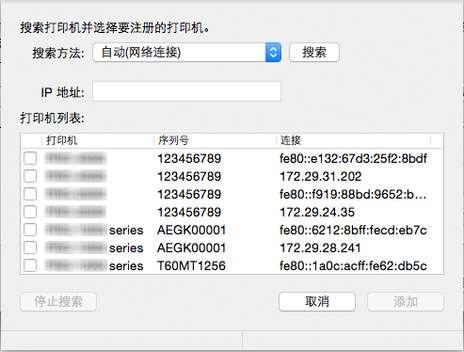 等待完成已搜索到的打印机的信息获取后,搜索将停止。