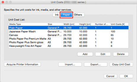 Setting the Unit Cost for Items Other Than Ink and Paper