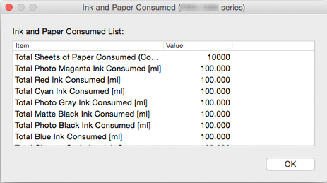To display the dialog box, click Ink and Paper Consumed from Printer in the File menu.