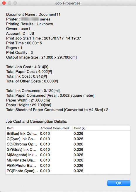 Displayed according to unit cost settings based on the logical paper size included in the job cost.