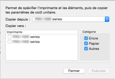 Sélectionnez l'imprimante à partir de laquelle les coûts de l'unité seront copiés dans Copier depuis.