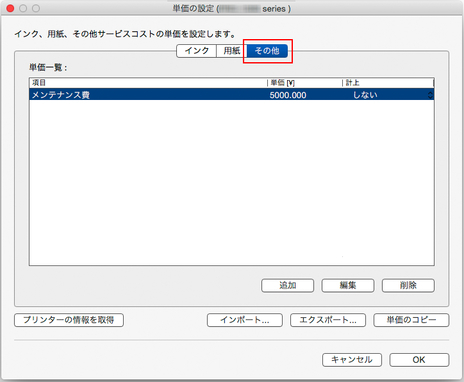「単価のコピー」では、設定した単価を他のプリンターにコピーできます。