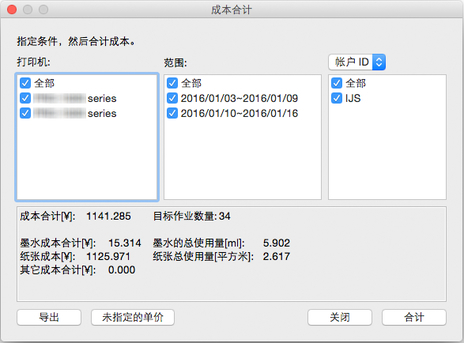 从所有目标打印机获取完作业日志后,将提取作业日志、计算成本并显示合计结果。