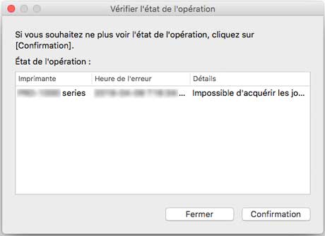 Une liste des erreurs survenues pendant l'acquisition des journaux de travaux s'affiche.