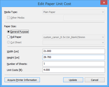 Setting the Unit Cost for Items Other Than Ink and Paper