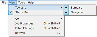 Toolbars include the Standard Toolbar and Navigation Toolbar, and you can show and hide each toolbar.
