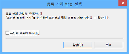 선택한 프린터의 등록을 삭제한 후에도 해당 프린터를 프린터 목록에 유지하려면 프린터 목록에 유지 확인란을 선택하십시오.