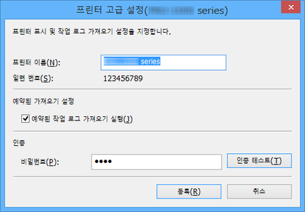 프린터를 등록하면 예약된 가져오기 설정을 사용할 수 있습니다. 예약된 가져오기 설정을 사용할 수 없는 경우 작업 로그를 수집할 수 없습니다.