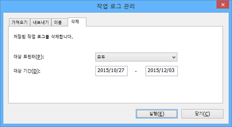 지정한 조건에 맞는 작업 로그를 삭제합니다.