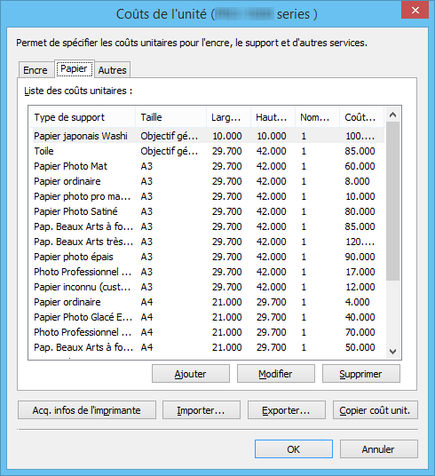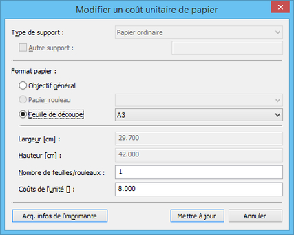 - Modification des coûts de l'unité pour le papier