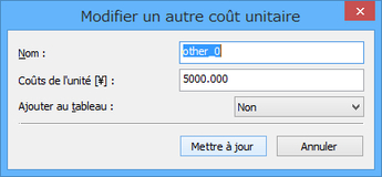 Modification à l'aide de la boîte de dialogue Modifier un autre coût unitaire
