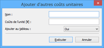 Pour plus d'informations sur chaque élément, reportez-vous à «Boîte de dialogue Coûts de l'unité».