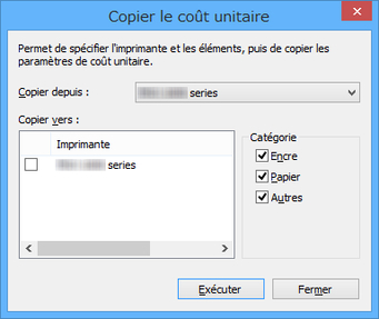 Sélectionnez l'imprimante à partir de laquelle les coûts de l'unité seront copiés dans Copier depuis.