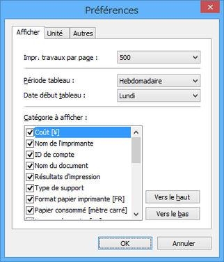 Configurez les paramètres liés à l'affichage d'Accounting Manager.