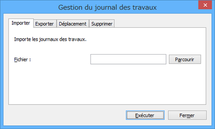Vous pouvez importer un fichier d'informations des travaux exportés à l'aide de la page Importer de la boîte de dialogue Gestion du journal des travaux.