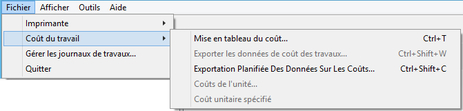 Exportez les informations sur les coûts au format CSV pour les travaux sélectionnés dans la liste Coût du travail sur l'écran principal.