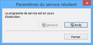 Vous pouvez afficher l'état de fonctionnement du service résident et contrôler le démarrage et l'arrêt de celui-ci dans les Paramètres du service résident.