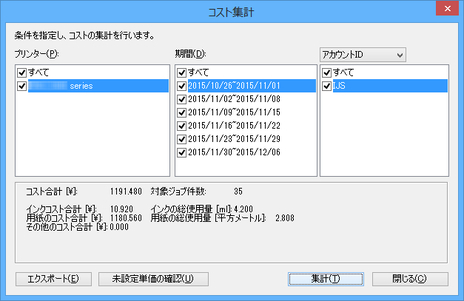 [集計]ボタンをクリックすると、対象プリンターからジョブログの取得を行います。