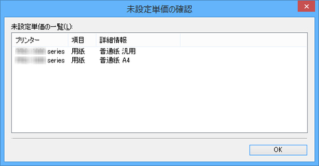 リストアップされた未設定単価は、[未設定単価の確認]ダイアログボックスで表示します。