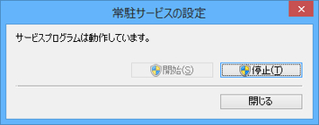 [常駐サービスの設定]ダイアログボックスでは、常駐サービスの動作状況の表示と、常駐サービスの開始、および停止の制御を行います。