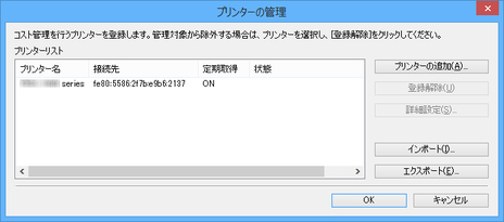 プリンターリストでチェックマークを入れたプリンターは、管理対象プリンターとして、[プリンターの管理]ダイアログボックスの[プリンターリスト]に表示されます。