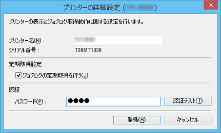 プリンターの操作パネルで、ジョブ履歴を表示しない設定にしている場合は、ジョブログを取得する際に、認証情報が必要となります。