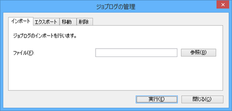 ジョブログに関する操作(インポート、エクスポート、移動、削除)を実行します。