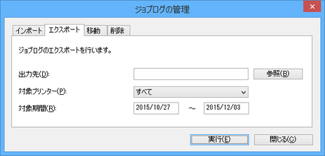 ジョブログのエクスポートを実行します。収集したジョブの情報をファイルに出力します。