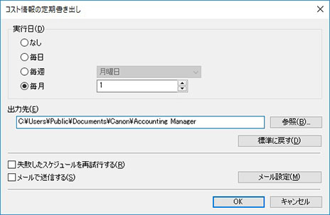 コスト情報の定期書き出しダイアログボックス