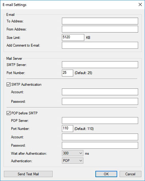 显示“电子邮件设置对话框”。