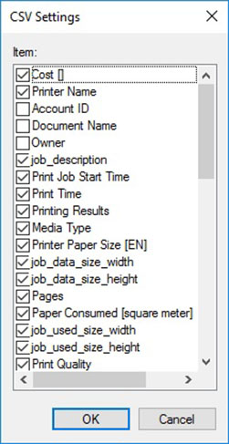 显示可以导出到CSV格式文件的项目。 选择要导出的项目。