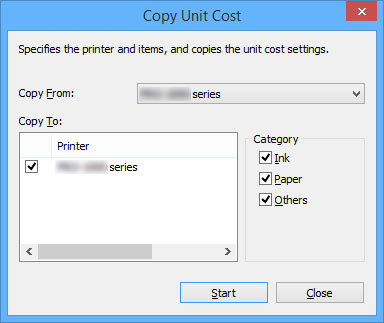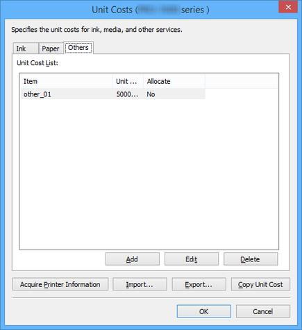 Se você copiar custos unitários, todas as configurações de custo unitário da impressora que recebeu as cópias serão substituídas pelas configurações de custo unitário da impressora a partir da qual a cópia foi feita.