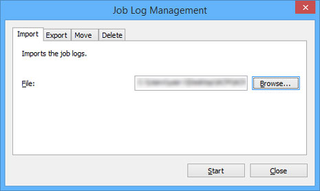 可以将收集的作业日志作为文件进行导出和导入。 如果要更换用于管理的计算机、更改作业日志目标或增加硬盘容量,可以使用此文件。
