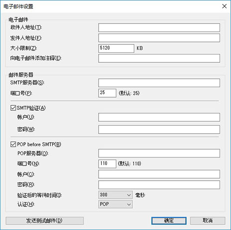 - 要确认能否以设置的条件正确发送电子邮件,请单击发送测试邮件。 将会发送测试电子邮件。