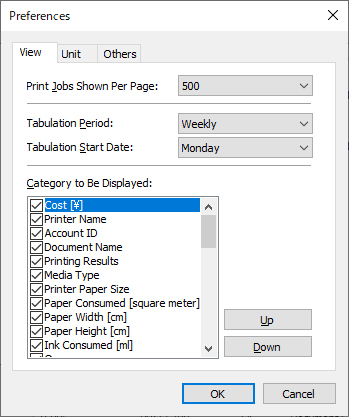 Legen Sie die Anzahl der pro Seite angezeigten Elemente für die Kosten für den Druckauftrag fest, die in der Liste angezeigt werden.