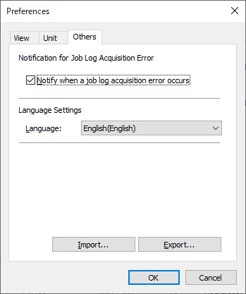 Wählen Sie aus, ob eine Benachrichtigung auf dem Hauptbildschirm angezeigt werden soll, wenn bei der Erfassung von Job-Protokollen Fehler auftreten.