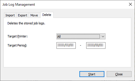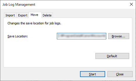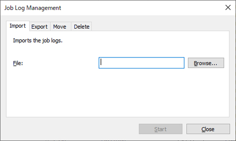 Führt Vorgänge im Zusammengang mit Job-Protokollen aus (Importieren (Import), Exportieren (Export), Bewegen (Move) und Löschen (Delete)).