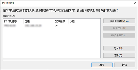 如果选择保留在打印机列表中,打印机会保留在标记为(已取消注册)的打印机列表中。 即使取消注册打印机,也可以查看取消注册之前获取的作业日志。