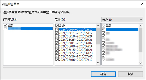 会出现筛选作业日志对话框。