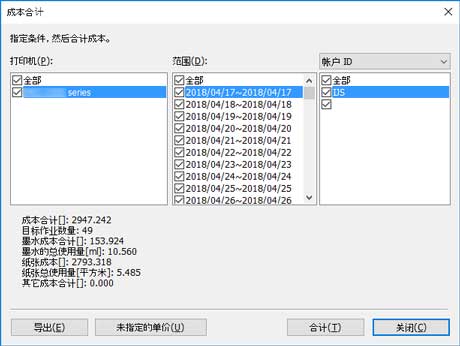 可以在成本合计对话框中指定合计标准并显示成本合计结果。