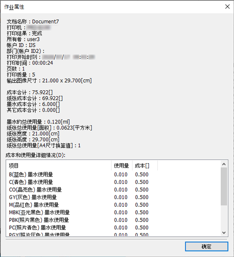 此外,也可在作业成本列表中双击要查看其属性的作业来打开该对话框。