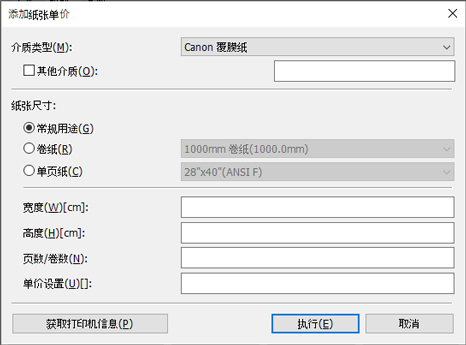对于介质类型中未显示的纸张,会出现“未知纸张[纸张 ID]”,请输入此纸张ID。