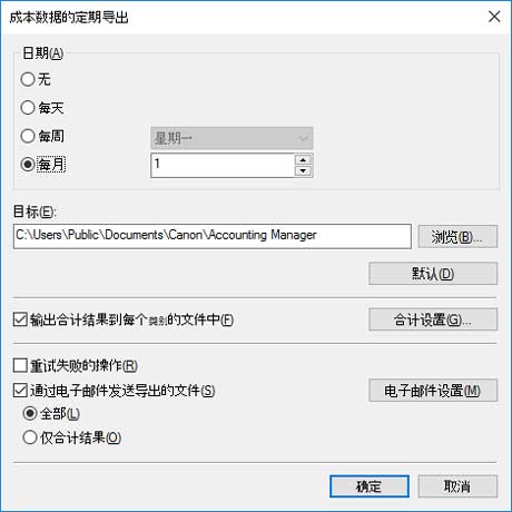 从文件菜单的成本中选择成本数据的定期导出可显示此对话框。