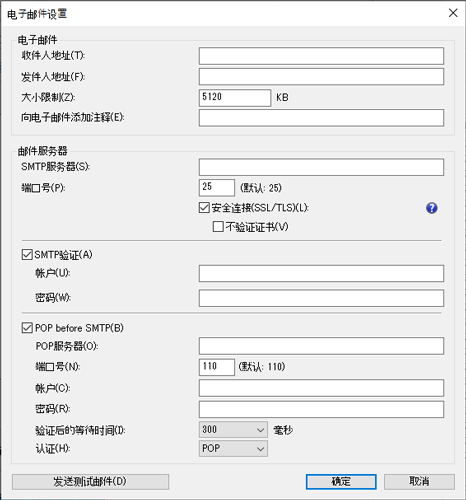 电子邮件设置对话框