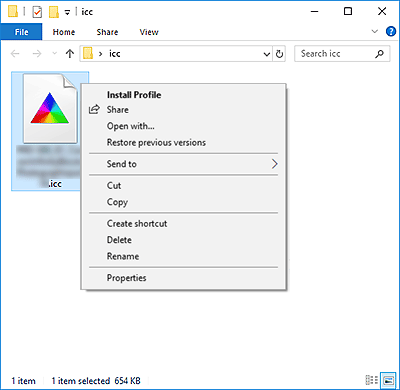 Haga clic con el botón derecho en el perfil ICC que desee utilizar.
