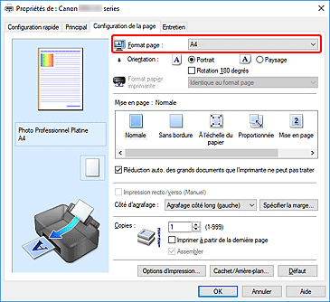 Remarque- Sélectionnez "XXX (Marge 25) (XXX (Margin 25))" si nécessaire. XXX correspond au format papier.