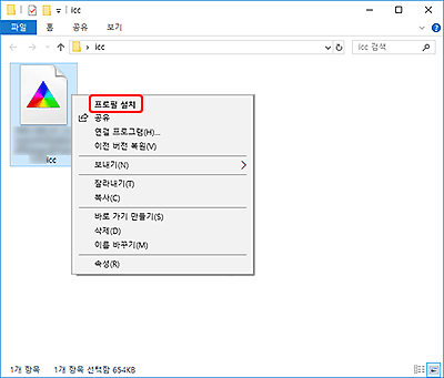 사용하려는 ICC 프로파일을 마우스 오른쪽 버튼으로 클릭합니다.